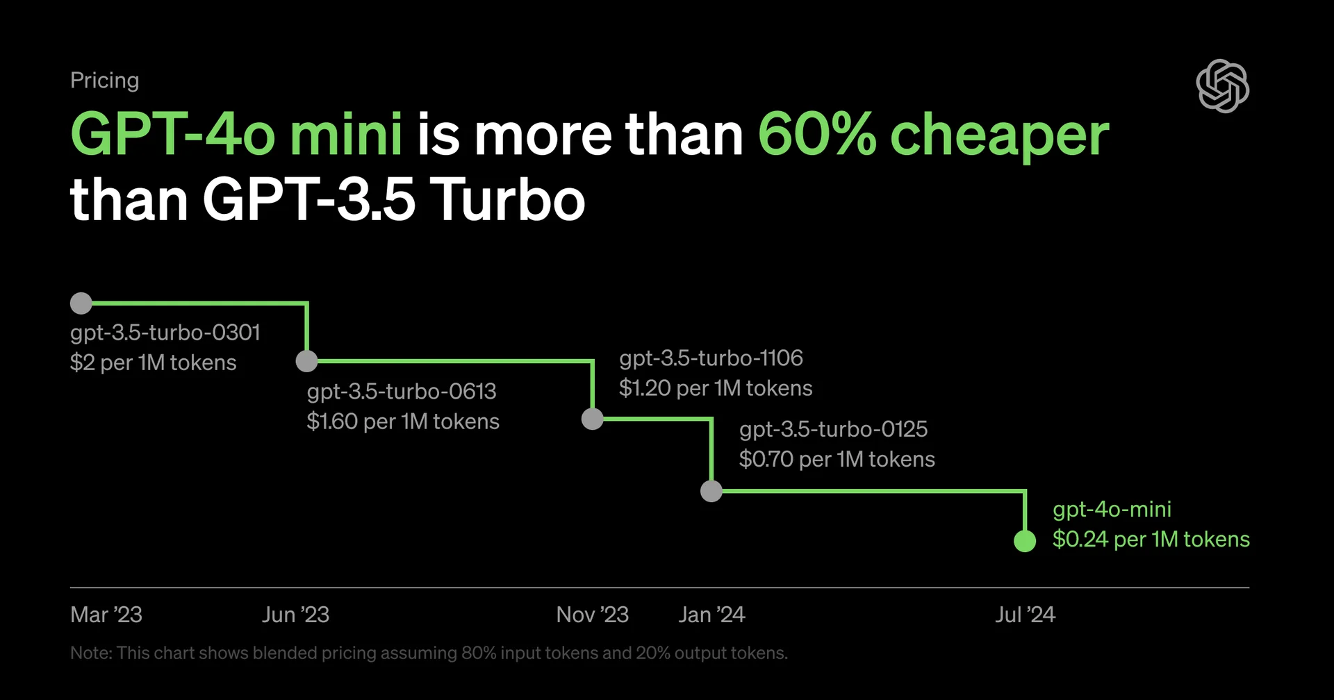 일반적인 책 2,500페이지에 해당하는 분량의 텍스트를 처리하는 데 드는 비용이 GPT-4o 미니의 가격 구조로 크게 절감되었습니다.